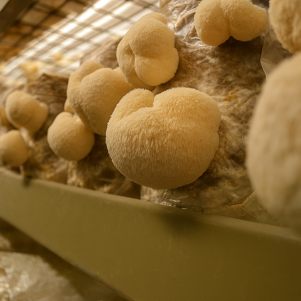 Utilizamos el cuerpo fructífero de la melena de león, cultivado sin pesticidas.